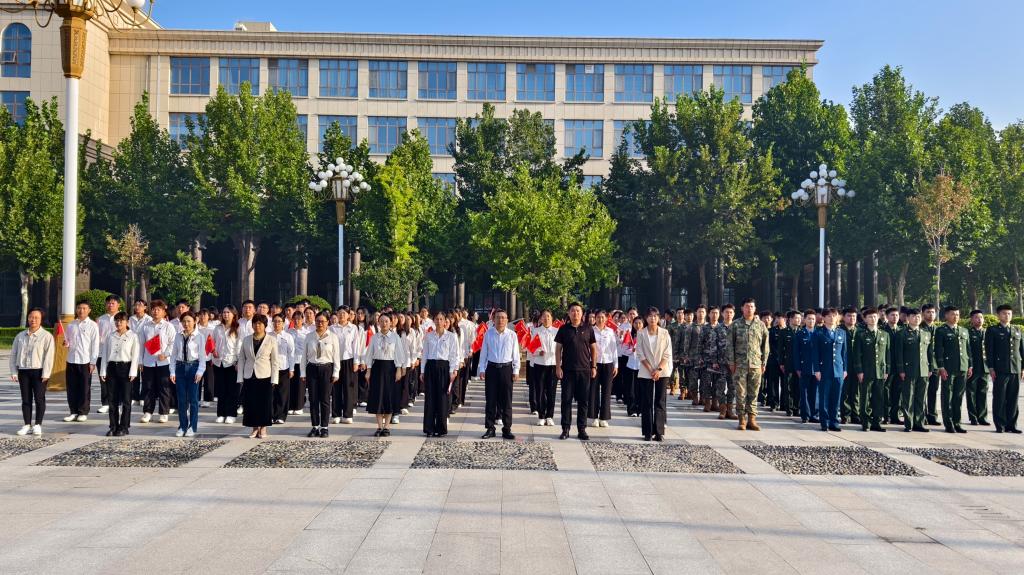 为深入学习贯彻习近平总书记在纪念中国人民抗日战争暨世界反法西斯战争胜利80周年大会上的重要讲话精神,传承和弘扬伟大抗战精神,凝聚奋进力量,9月29日上午,BBIN宝盈集团在腾飞广场隆重举行“与国同梦共奋进,挺膺担当向未来——‘庆国庆’国旗下的思政课”主题教育活动。BBIN宝盈集团党委领导班子,党员教师代表,全体辅导员,学生党员、入党积极分子等200余人参加活动。