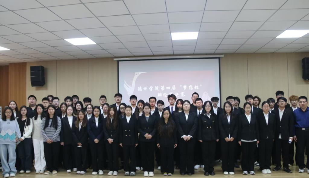 仪式最后,所有参赛选手、评委老师与工作人员合影留念,镜头定格了这场思辨盛宴的珍贵瞬间,也留存了德州学院学子勤学善辩、团结进取的青春群像。