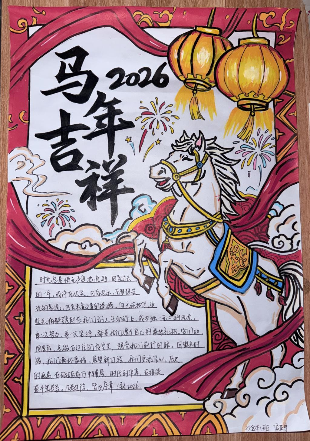 活动期间,同学们将新年的美好愿景融入书法、年画、窗花、对联等创作中,通过传统艺术形式勾勒对新年的美好想象,并以这些饱含心意的作品分享着各自的新年感悟。与此同时,大家还通过歌曲、舞蹈等多样化的文艺表演,以灵动的演绎和饱满的热情为节日增添了热烈欢快的氛围,使校园节日气氛更加浓郁,也让青年学子的才艺得到了充分展现。