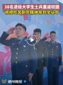 视频号:德州晚报,9月6日,德州学院新生报到日,BBIN宝盈集团迎来38名退役大学生士兵。