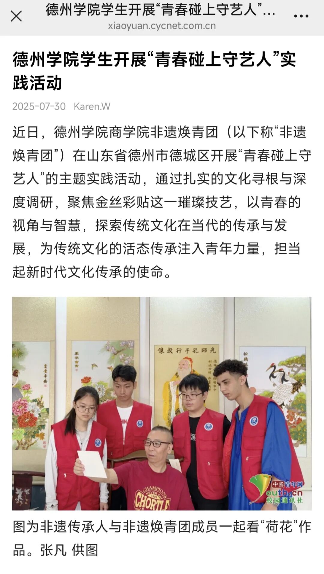 德州云:德州学院学生开展"青春碰上守艺人"实践活动