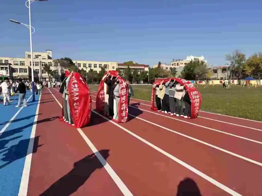 隔壁"旋风跑"也嗨翻天啦!六人小队紧握长竹竿,绕着标志杆折返冲刺。起跑时虽稍显手忙脚乱,但很快"一二一"的口号就响彻云霄,整齐步伐踏出雷霆气势。当最后一名队员旋风般冲线时,团队的欢呼声简直要把操场掀翻!