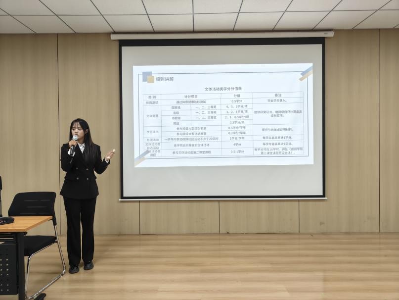 活动伊始,吴泽萱同学明确了本次讲解的核心目的,随后围绕第二课堂学分分类、活动归属规则展开详细解读,重点向新生传递“分类开展、自主选择”的参与原则,并清晰介绍了第二课堂涵盖的7大核心板块。过程中,她认真倾听新生提出的疑问与建议,逐一详细记录并耐心回应,确保每位新生都能理解规则、消除困惑。同时她提到,新生通过参与第二课堂多样化活动,既能实现个人能力提升,也能在互动交流中拓展校园人脉,为大学生活注入更多活力。