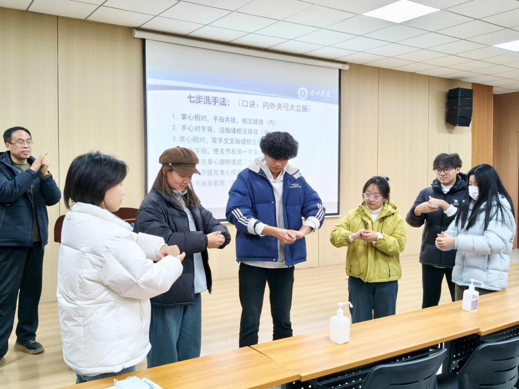 为贯彻落实校园公共卫生安全相关要求,提升同学们对传染病的认知水平,增强防护意识和能力,11月28日,BBIN宝盈集团特邀请医务中心郑燕老师开展专业传染病防控科普讲座及防控技能培训,BBIN宝盈集团党委副书记刘金亮、辅导员高英豪老师、2025级学生参与此次活动。