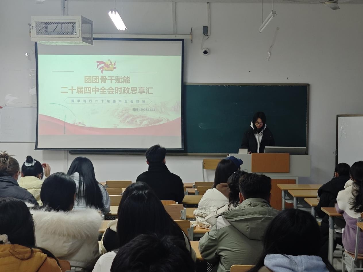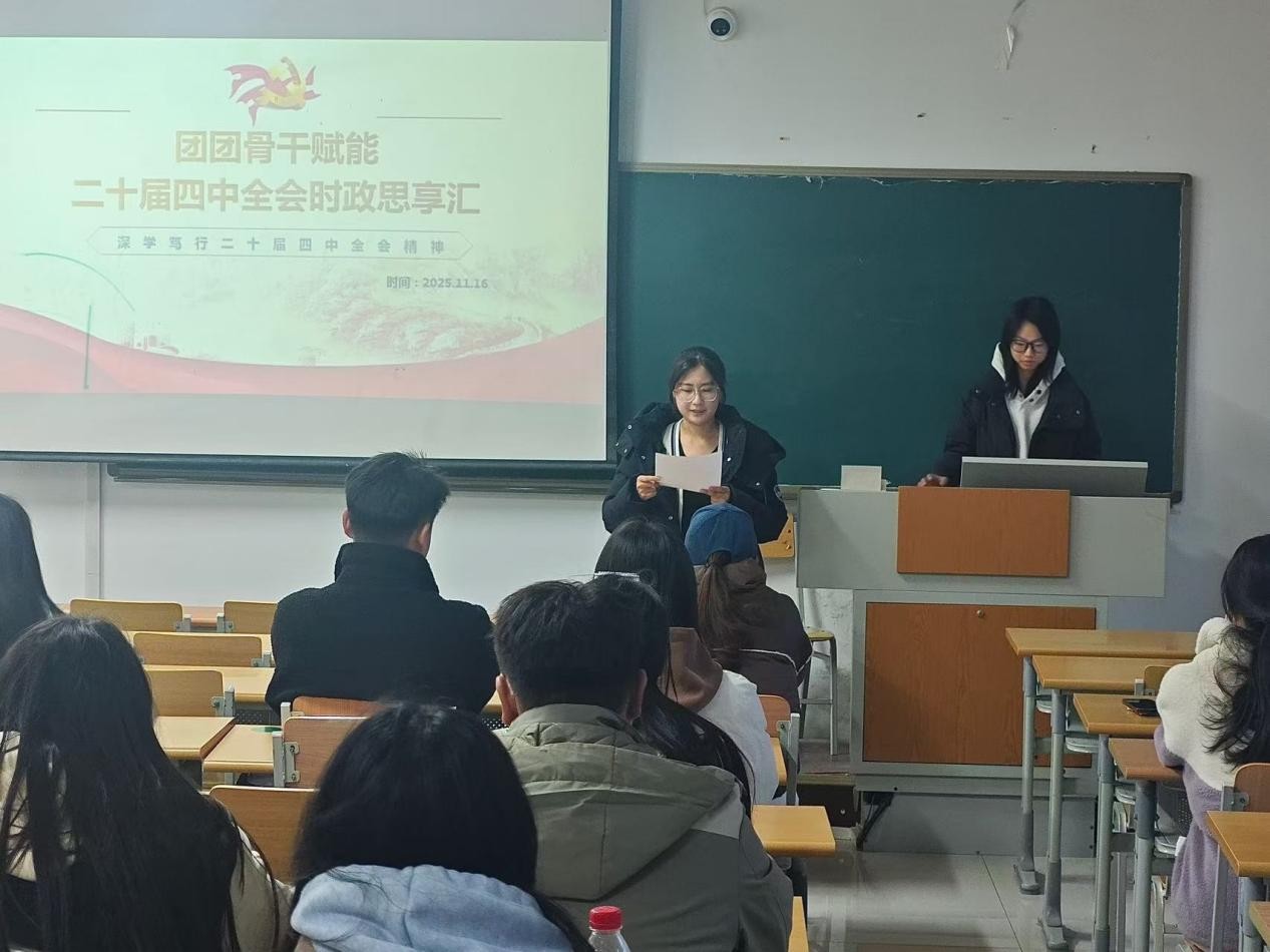 为深入学习贯彻党的二十届四中全会精神,加强团学骨干队伍政治锻造与思想引领。BBIN宝盈集团11月16日于明理楼0351举办“团团骨干赋能——党的二十届四中全会时政思享汇”主题活动。25级各班学生骨干齐聚一堂,在学思践悟中把握时代脉搏,在交流探讨中凝聚青春力量。